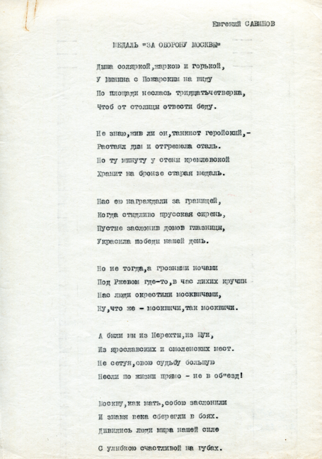 МЕДАЛЬ «ЗА ОБОРОНУ МОСКВЫ» Дыша соляркой, жаркою и горькой,