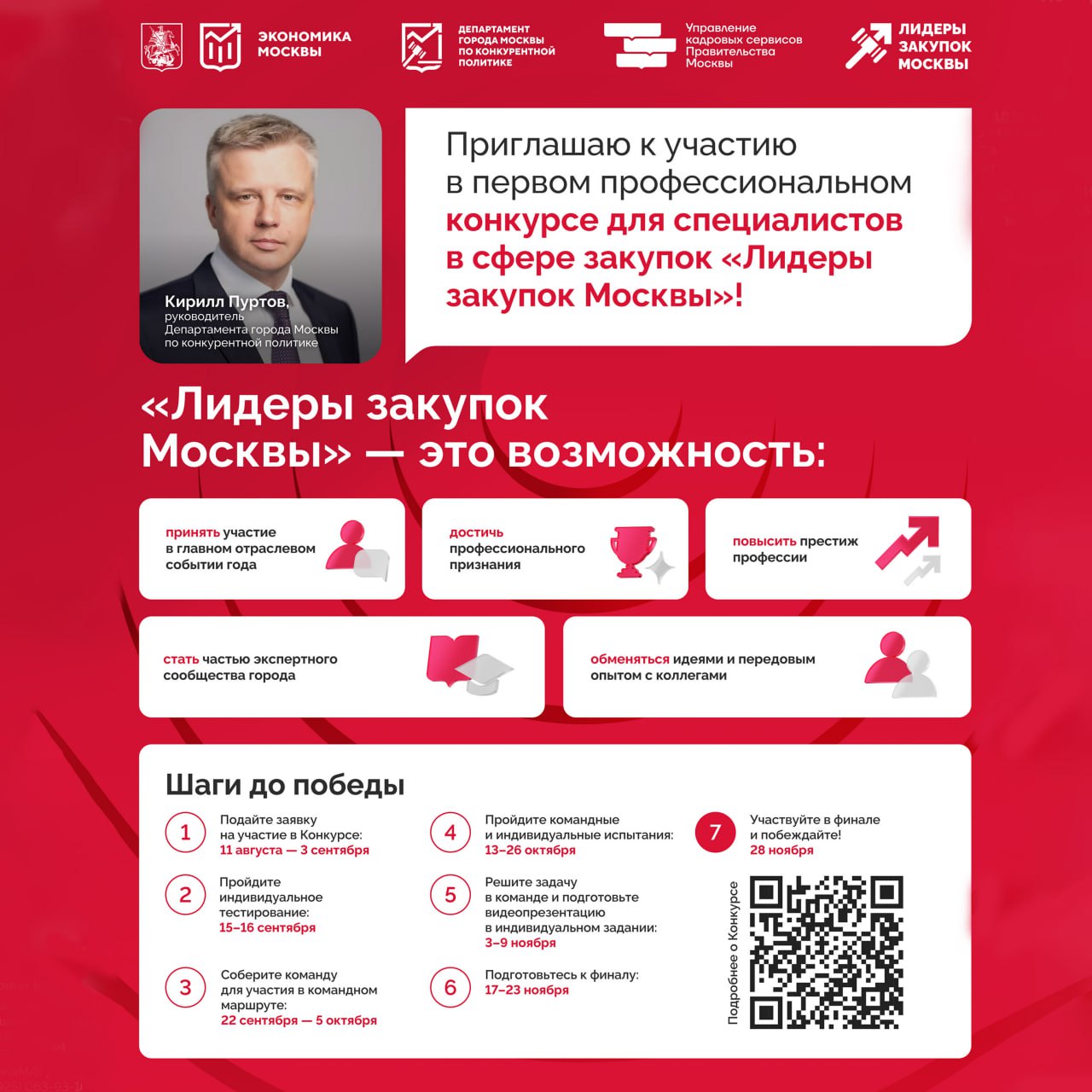 Департамент города Москвы по конкурентной политике совместно с Управлением кадровых сервисов Правительства Москвы проводят первый конкурс профессионального мастерства «Лидеры закупок Москвы».